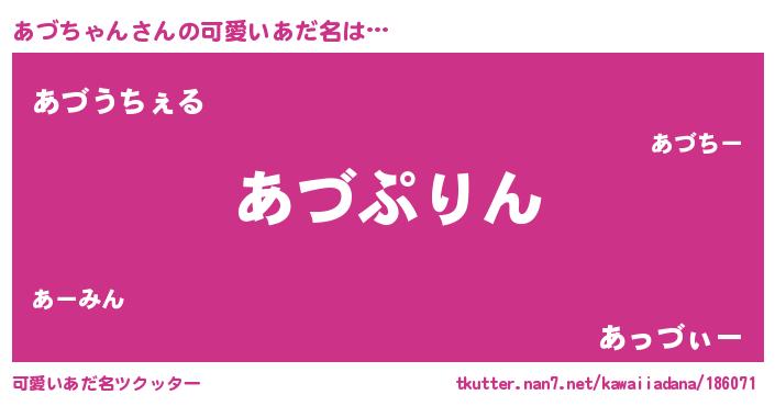 | 意味不明あだ名 | 『しいたけ科あづちゃん属』 |
