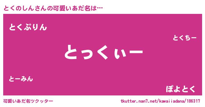 | 男性向けラノベタイトル風あだ名 | 『とくのしんの嫁は女の子じゃないと思った?』 |