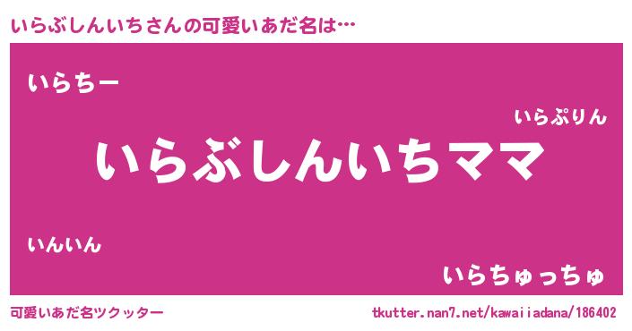 | 男性向けラノベタイトル風あだ名 | 『いらぶしんいちという概念が存在しない退屈な世界 』 |