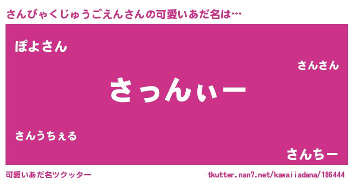 | ポケモン風あだ名 | 『ヒサンビャクジュウゴエン』『サーンイ』 |