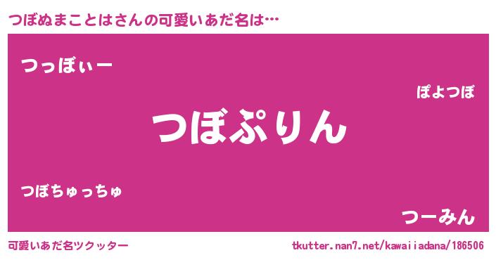| 意味不明あだ名 | 『なめこ科つぼぬまことは属』 |