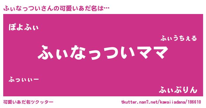 | ヘコむあだ名 | 『ふぃなっつい(爆)』『ふぃお』 |