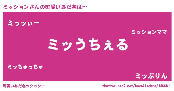 | ヘコむあだ名 | 『ミッぷりん』『ミッション(苦笑)』 |
