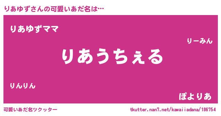 | ヘコむあだ名 | 『りあゆず(小並感)』『りあにー』 |