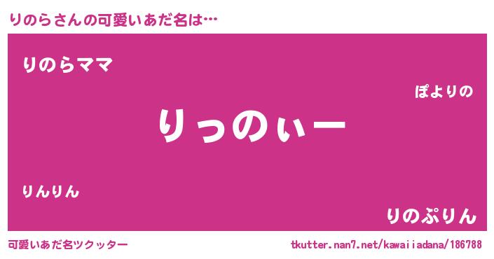 | ヘコむあだ名 | 『りのっ子』『りのら(小並感)』 |
