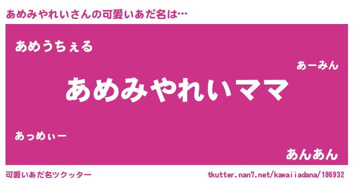 | 恥ずかしいあだ名 | 『あめちん』『アメミヤレイデラックス』 |