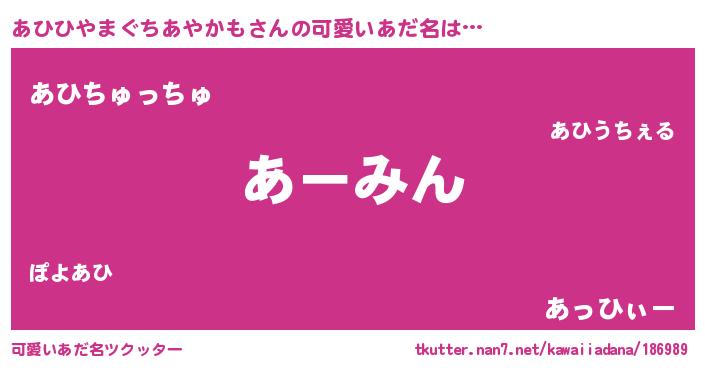 | ヘコむあだ名 | 『あひっぺ』『あひひやまぐちあやかも(笑)』 |