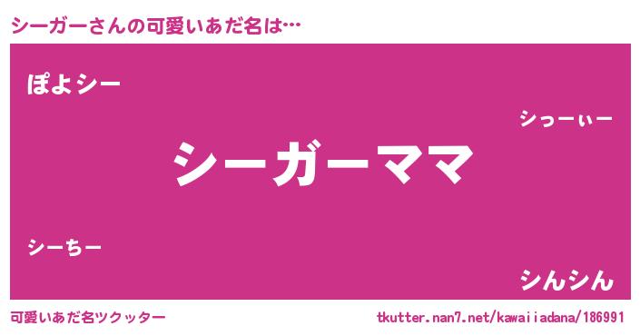 | 意味不明あだ名 | 『永久保存シーガー』『ペロリンシーガー』 |