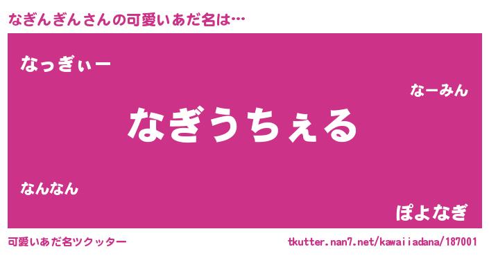 | 男性向けラノベタイトル風あだ名 | 『Re:なぎんぎんから始める異世界生活』 |