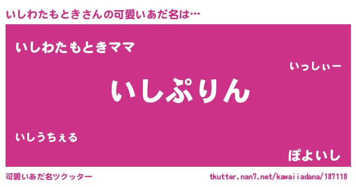 | 女子向けラノベタイトル風あだ名 | 『いしわたもときの玉の輿計画!』 |