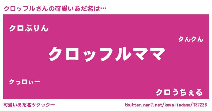 | 意味不明あだ名 | 『永久保存クロッフル』『自称クロッフル』 |