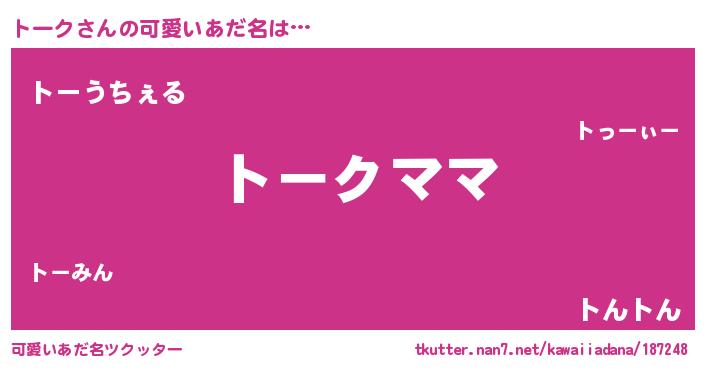 | ヘコむあだ名 | 『トーク(爆)』『トーっふぃ~』 |