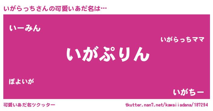| 男性向けラノベタイトル風あだ名 | 『いがらっち~年齢イコール彼女いない歴の魔法使い~』 |