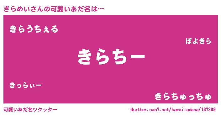 | 意味不明あだ名 | 『きらめいフォーエバー』『自称きらめい』 |