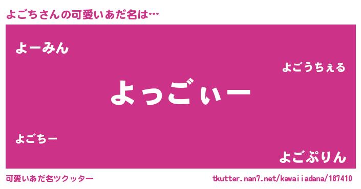 | ヘコむあだ名 | 『よごぷりん』『豆乳』『よごもー』 |