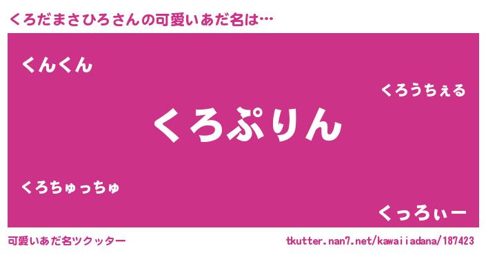 | 女子向けラノベタイトル風あだ名 | 『くろだまさひろの玉の輿計画!』 |