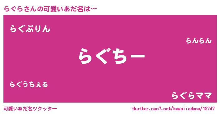 | 意味不明あだ名 | 『らぐらフォーエバー』『永久保存らぐら』 |