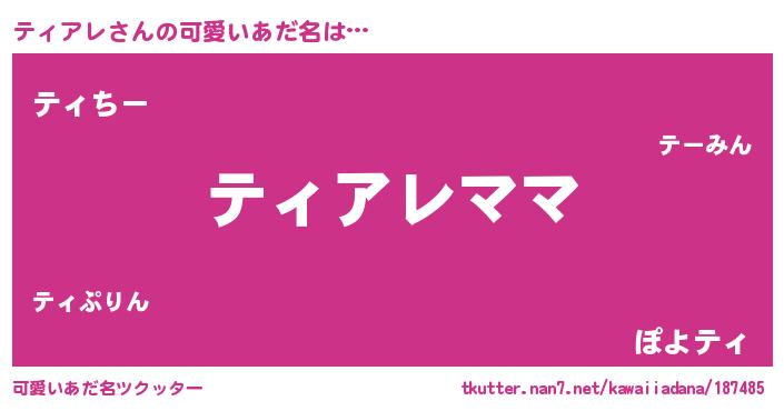 | ヘコむあだ名 | 『ティアレ(笑)』『なまこ酢』 |