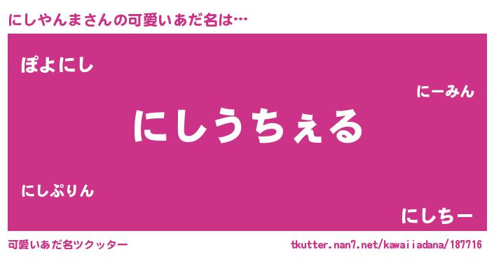 | ヘコむあだ名 | 『なまこ酢』『にしもー』 |