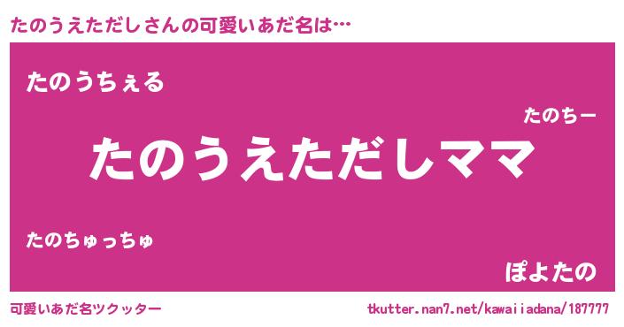 | 男性向けラノベタイトル風あだ名 | 『たのうえただしという概念が存在しない退屈な世界 』 |
