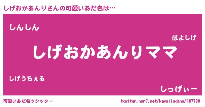| ヘコむあだ名 | 『しげおかあんり(遠い目)』『しげふぇ~』 |