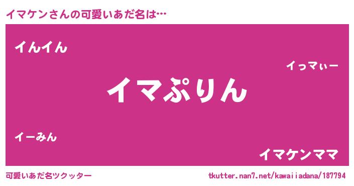 | ヘコむあだ名 | 『イマもー』『イマケン(笑)』 |