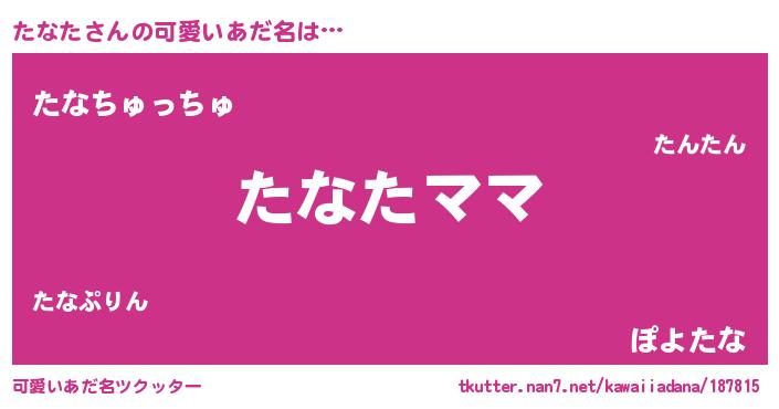 | 意味不明あだ名 | 『永久保存たなた』『ペロリンたなた』 |