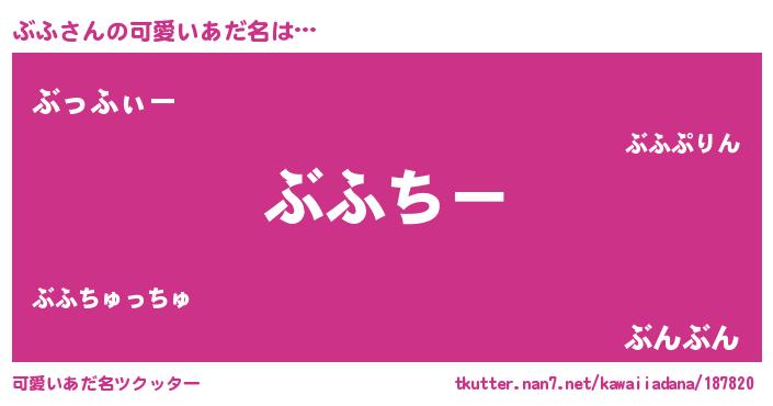 | ポケモン風あだ名 | 『ブフダネ』『ヒブフ』『ブフチュウ』 |