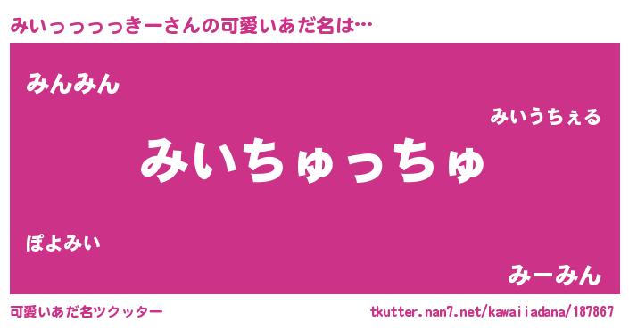 | ヒーロー風カッコイイあだ名 | 『慈愛の使者みいっっっっきー』 |