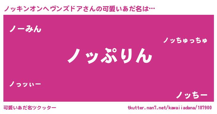 | 男性向けラノベタイトル風あだ名 | 『ノッキンオンヘヴンズドアスレイヤー』 |