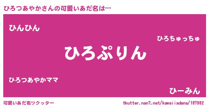 | 料理風あだ名 | 『ひろつあやかごはん』 |