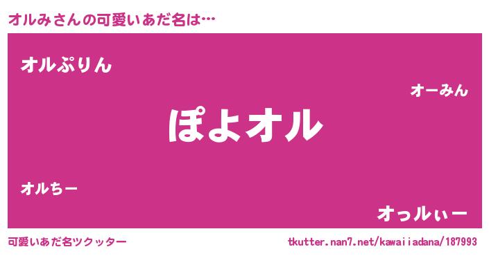 | 男性向けラノベタイトル風あだ名 | 『この素晴らしい世界にオルみを!』 |