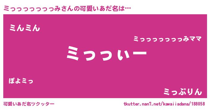 | 胡散臭い通販商品みたいなあだ名 | 『信頼と実績のサプリメント…その名も「ミっっっっっっっみ」』 |