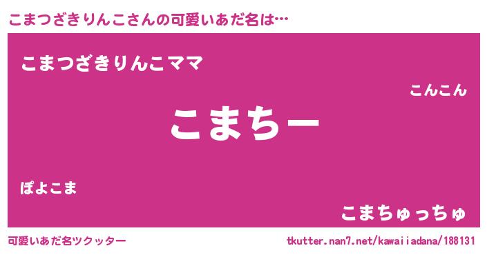 | 女子向けラノベタイトル風あだ名 | 『こまつざきりんこの雑貨屋さん』 |