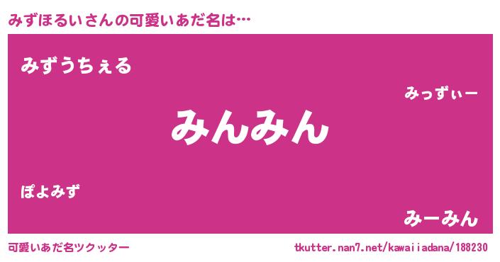 | ヒーロー風カッコイイあだ名 | 『スーパーミズホルイ』『黄金騎士ミズ』 |