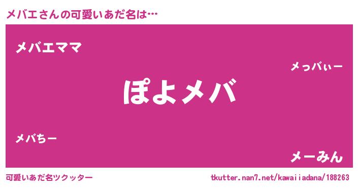 | ポケモン風あだ名 | 『メーバイ』『ゼニメバ』『ヒメバエ』 |