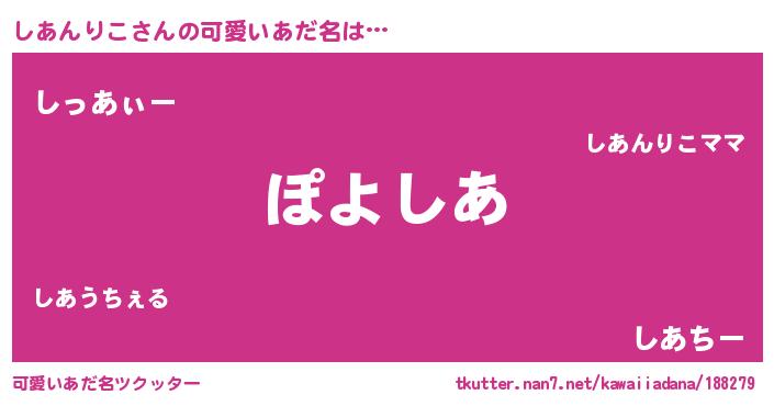 | ヘコむあだ名 | 『しあぷりん』『豆乳』『しあにー』 |