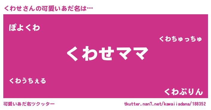 | ヘコむあだ名 | 『くわせ(爆)』『酢こんぶ』『くわお』 |