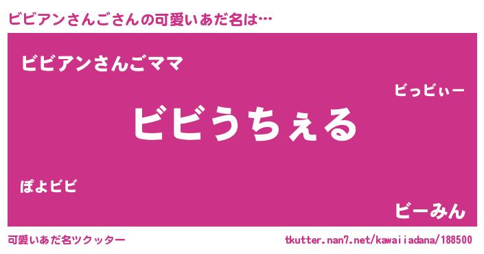 | 恥ずかしいあだ名 | 『ビビアンサンゴデラックス』『ビビちん』 |