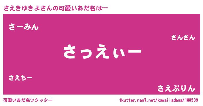 | 男性向けラノベタイトル風あだ名 | 『さえきゆきよの嫁は女の子じゃないと思った?』 |