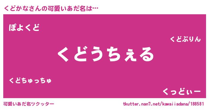 | ヒーロー風カッコイイあだ名 | 『サイバー戦士クドカナ』『仮面クドダー』 |