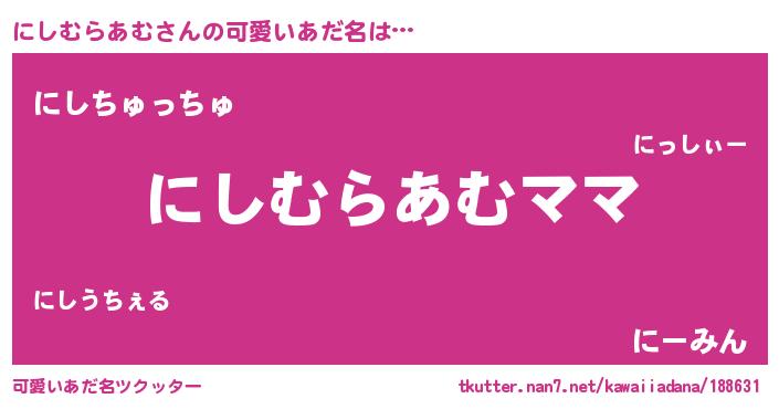 | ヘコむあだ名 | 『にしむらあむ(笑)』『にしっぺ』 |