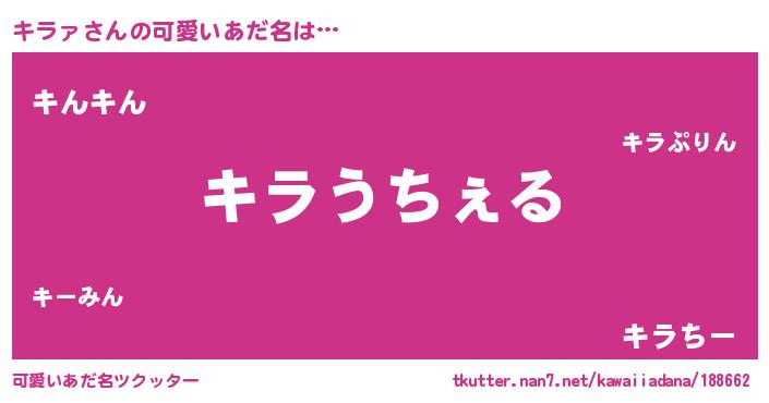 | 男性向けラノベタイトル風あだ名 | 『Re:キラァから始める異世界生活』 |