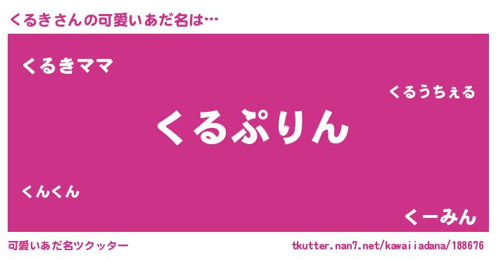 | ヘコむあだ名 | 『くるき(笑)』『くるっふぃ~』 |