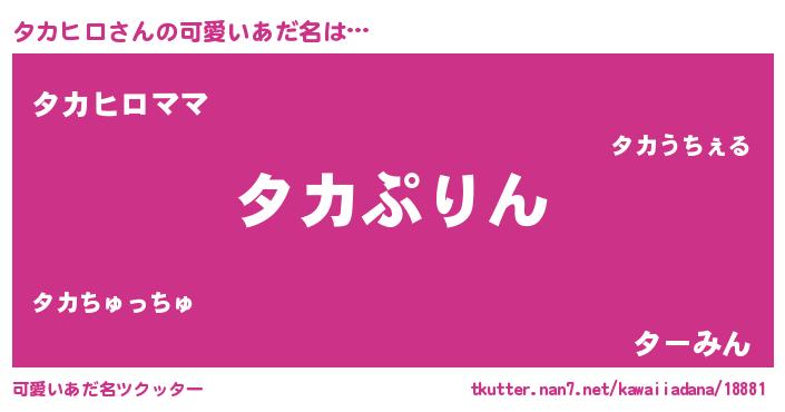 | 男性向けラノベタイトル風あだ名 | 『タカヒロに滅ぼされるだけの簡単なお仕事です』 |