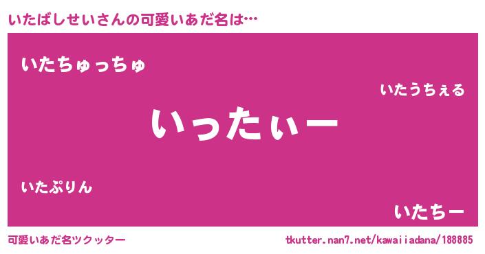 | 女子向けラノベタイトル風あだ名 | 『いたばしせいの卵を拾いまして』 |