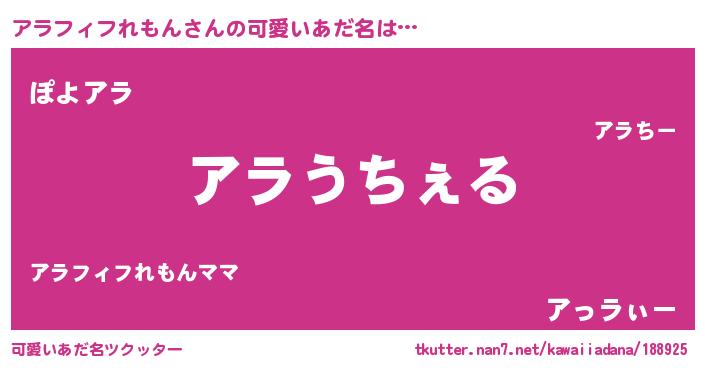 | ヘコむあだ名 | 『アラっちょ』『なまこ酢』 |