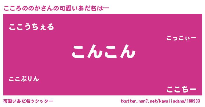 | 男性向けラノベタイトル風あだ名 | 『ココロノノカアートオンライン』 |