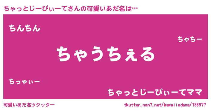 | 欧米人風あだ名 | 『ケンブリッジちゃっとじーぴぃーて』 |