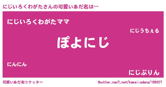 | ポケモン風あだ名 | 『ニジゴンZ』『ニージイ』『ゼニニジ』 |